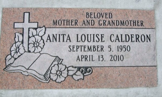 She was preceded in death by Margaret Frasier, Don Wolfe, Ronald Dester Stephens, Louis Wolfe, Don Wolfe, Andrea Janski, and Joe Jensen. Anita is survived by: Pat and Ray Rodgers, Jennifer Williams, Bill Frasier, Bessy Jensen, Gary Jensen, Donna Mobley, Sonya Renee Stephens-Wolfe, Maura (Phillip) Stephens-Butler, Ronda (Rene) Stephens, Jesus (Amanda) Calderon, and Joshua Calderon. Grandchildren: Maria, Teresa, Danielle, Reynaldo (Brenda), Sandra S., Carolina (Antonio), Mario, Kennia, Rene, Adriana, Alyesa, Javier, Sandra L., Issaiah, Jacob, Jesus. Great-Grandchildren: Tony, Rosaura, Angel, Luz, Maria, Natalie, Emily, Islam and Anwar. A Viewing will be held on Tuesday, April 20, 2010, 12 p.m. to 5 p.m. at Hillcrest Bruce Lee located at 2804 W. Lewis St. in Pasco. Memorial Service will be held at Faith Assembly Church on Thursday, April 22, 2010, 11 a.m., 1800 N. Rd 72 in Pasco.